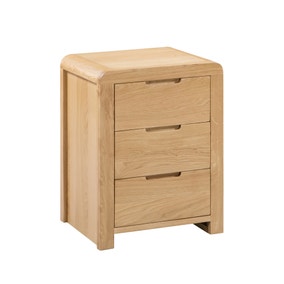 Crafted from solid oak & oak veneers, this bedside table is the perfect combination of classic and contemporary. With beautiful recessed handles and curved edging this bedside table is stunning. With 3 drawers this bedside table is perfect for holding all your night time essentials. Other matching furniture is also available.