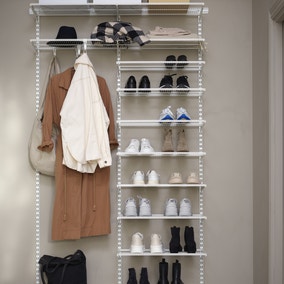 * Includes: 1 top track, 3 wall bars, 13 ventilated shelves, 23 brackets, 1 chrome valet rail, and fixings * Epoxy coated steel * Chip and stain resistant * Simple and quick installation – everything hangs from a single fixed top track * Totally modular – can be reconfigured or added to as your needs…