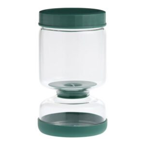 Flip over this cute and clever green hourglass-shaped glass jar to temporarily strain the brine from pickles, peppers, olives, beets, kimchi or sauerkraut. Inverting this pickle container keeps you from splashing around and making a sticky mess. Flipping the jar upright again returns the brine to your pickled foods to keep them from drying out….