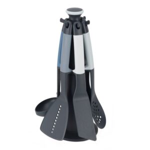 This innovative Joseph Joseph cooking utensil set features an ultra-compact design that utilizes vertical space. With essential spoons, spatulas and tongs for sautéing, stirring and serving, each piece in this kitchen tool set stores neatly on the included rotating stand for easy access. This cooking spoon set features weighted handles and built-in rests to keep…