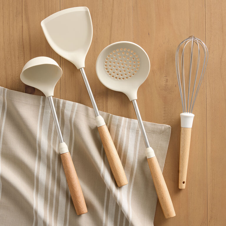 Cream Silicone and Wood Cooking Utensil Collection