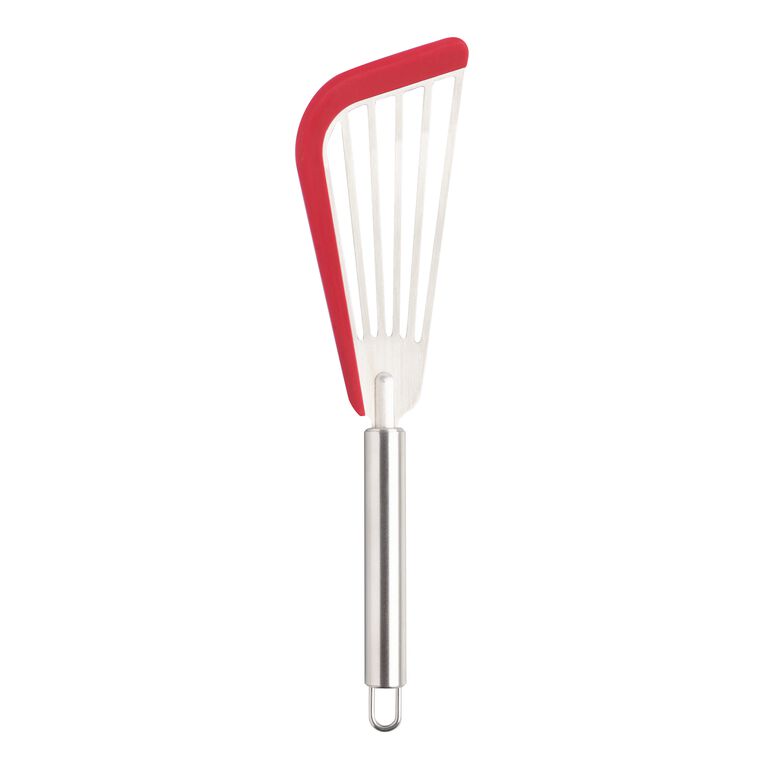 Red Silicone Edge Stainless Steel Slotted Fish Turner
